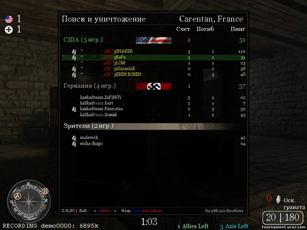 | Вот скрины: мы проиграли 21:3 ... Добавлено (10.09.2009, 20:14) --------------------------------------------- Еще я хочю попросить демо из каскада у: Bart PanicAaa и infiniti