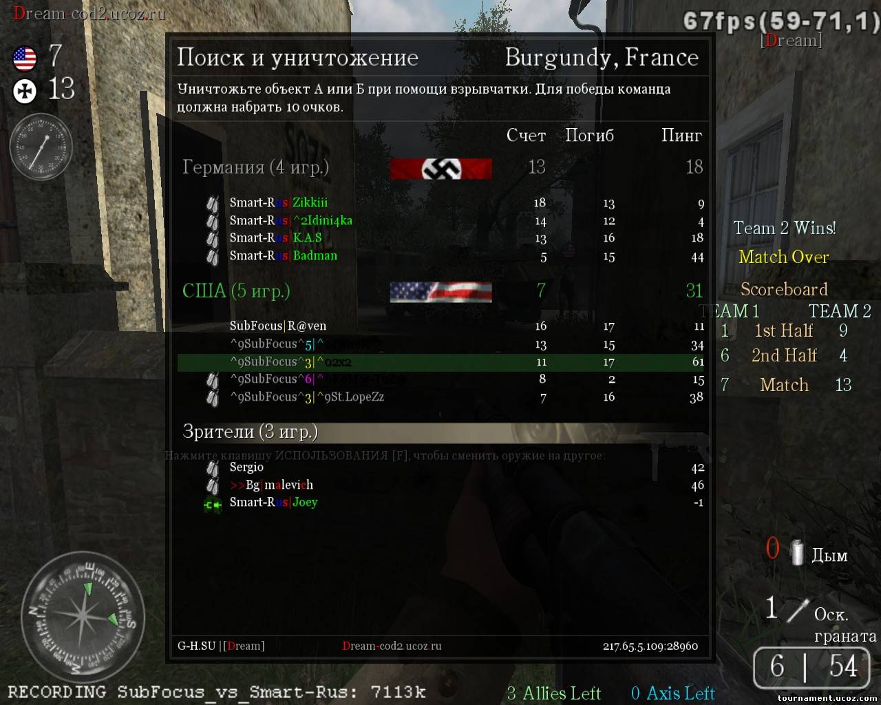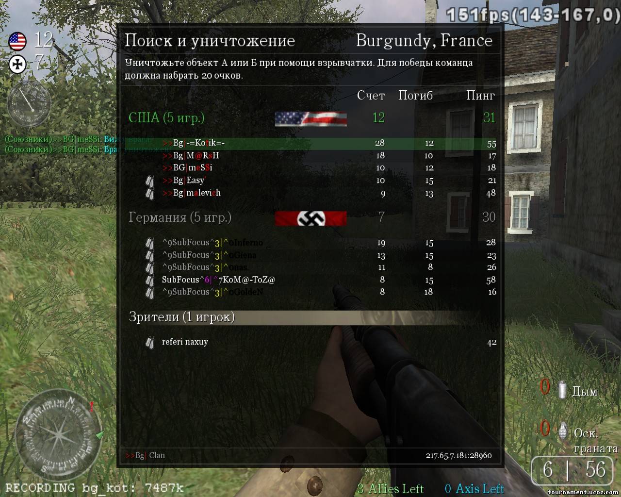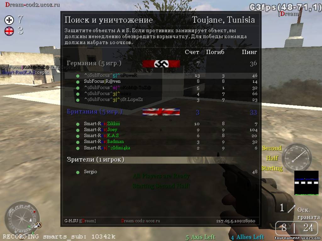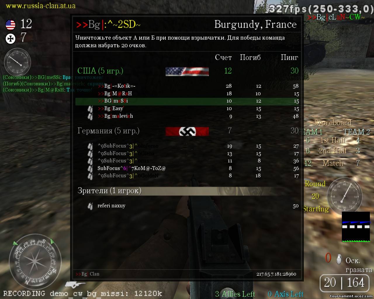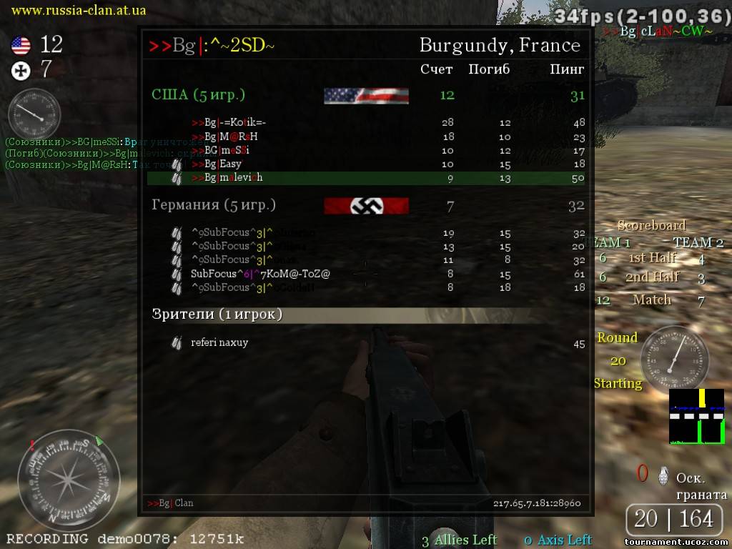 | Малевич, если тебе не нравятся сообщения, то это не дает тебе право их затирать. Это раздел для демо и скринов. О них и идет речь. Вот правила: 3.3 Если игрок вылетел ( Реконнект или Пинг 999 ) , то он обязан предъявить скрин и демо ( до вылета и после ) после КВ ! Марадер переконнектился и предоставил только один скрин и с одной карты. И судья его предупреждал. (ангел, кстати, тоже перезаходил. Но его пропустим). Если это нормально, то зачем писать в правилах??? Причем тут другие кланы?!Оо Разговор про вас. Лично к тебе, расалу и ангелу по игре претензий нету, а вот к рико и марадеру есть. И как раз у них только по одному скрину...