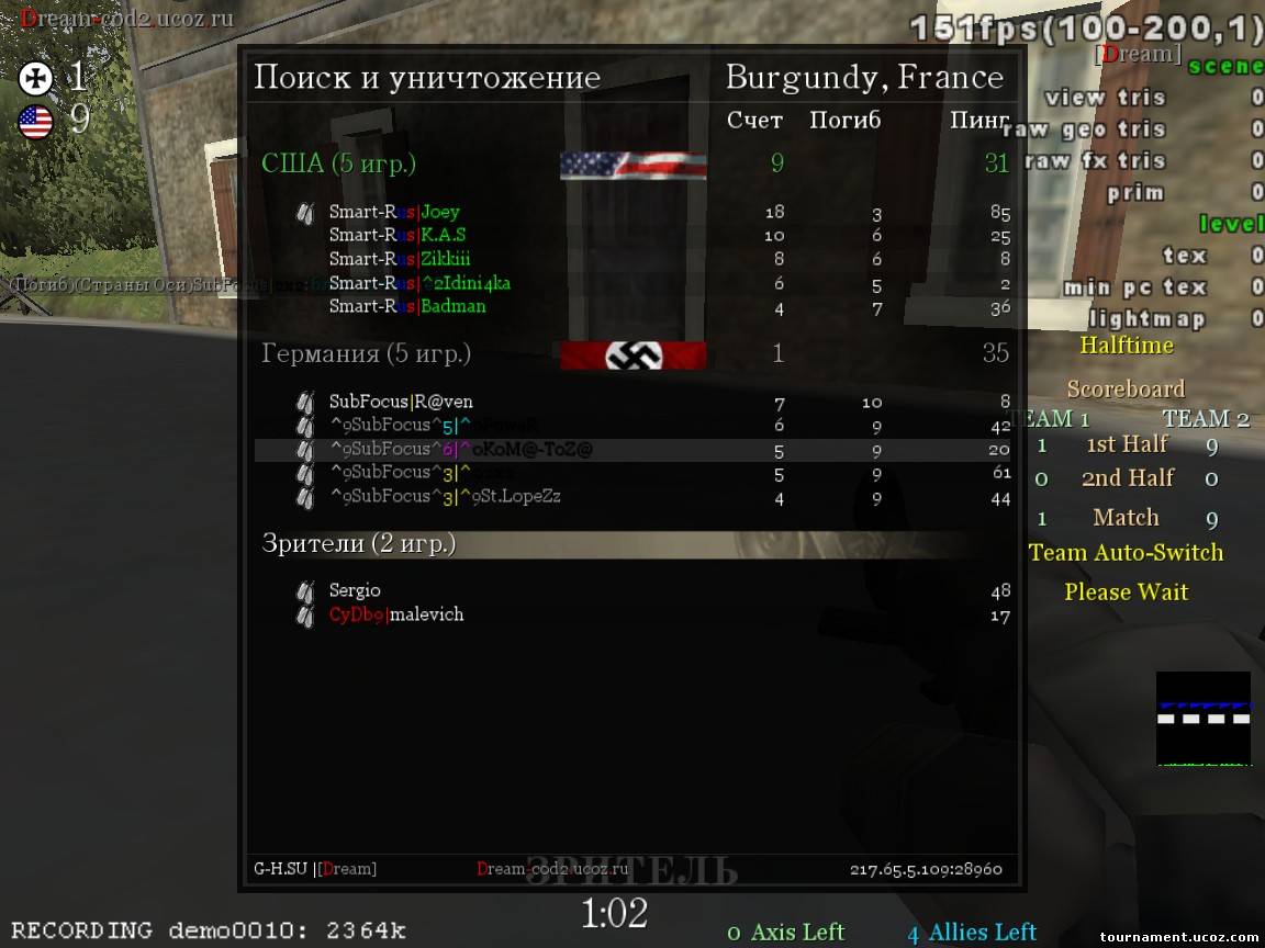 | Здесь выкладываются демо и скрины...и нечего тут всякий бред писать...свои бессмысленные предположения... На этом Турнире многие клны после кв практически нечего непредоставляют. Посравнению со многими клана мы выложили ВСЁ!!!!!...за прошлое кв я предоставил ВСе демки и скрины...на этом кв я опять предоставил все демки и скрины с каждого игрока...Если посмареть что выкладывают др кланы...то тоггда можно практически всем ставить ТП...