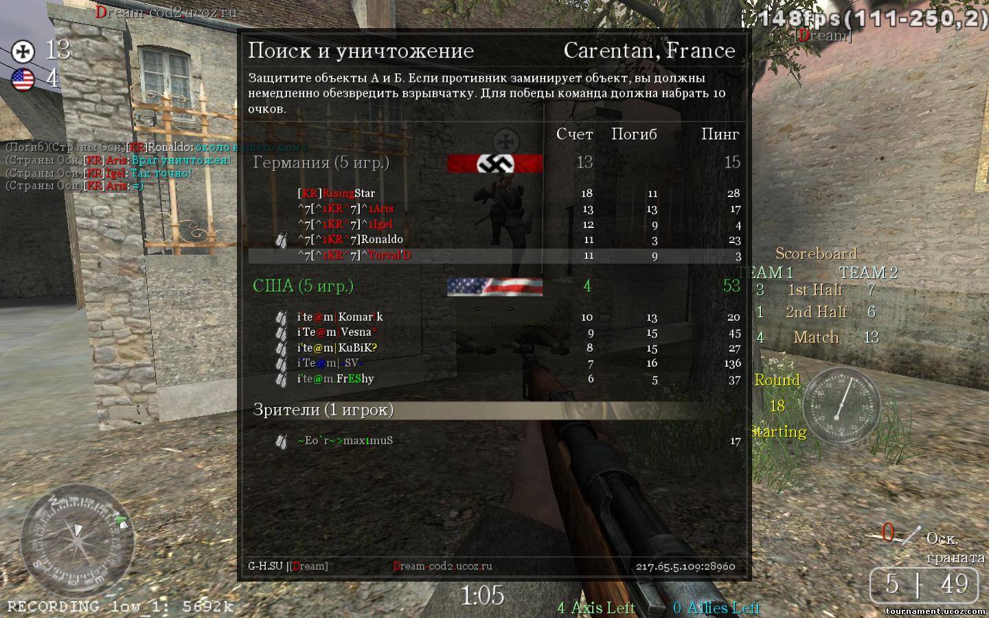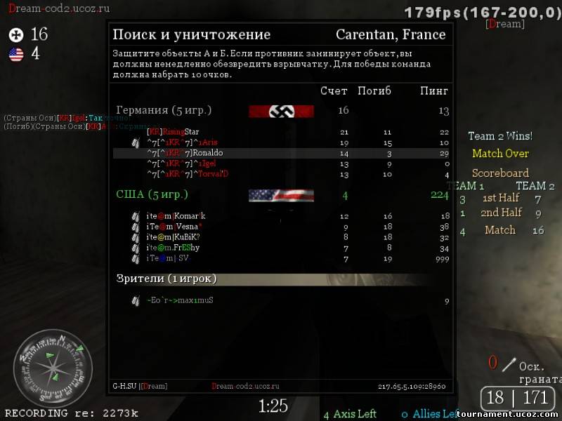| За что спасибо? Обидно становится(( Получается, что честно можно только на ланах сыграть. Жаль... Оказывается, много читеров на турнире( Вот только сложно заставить админов пересматривать демки! Ведь только читеры-нубы могут спалиться конкретно. А кто постоянно гамает с читами - тот тупо не палится! Сделать вывод что это читер, можно лишь посмотрев довольно большой промежуток игры, анализируя манеру игры! И ты, Роналдо - ЧИТЕР ( по крайней мере в игре против i'Te@m) Или я неправ?))